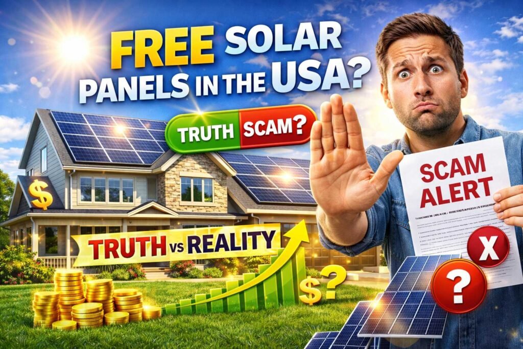 This guide breaks down the real truth vs reality of free solar panels in the USA, so homeowners can avoid scams, understand real savings opportunities, and make the smartest financial decision.